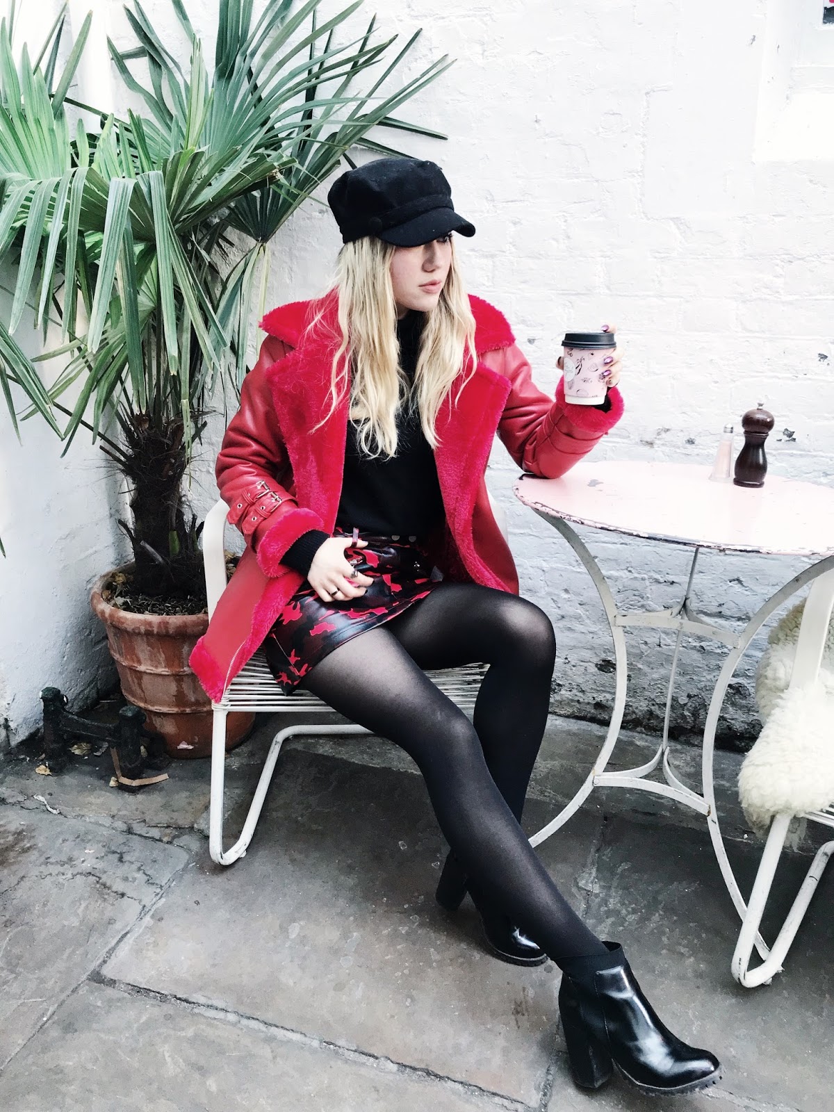 The final london look was this red + black one. I hate wearing skirts, but I forced myself into this little camo cutie, it was so worth it, especially paired with this show stopping red coat. This hat was basically attached to my head the entire trip, due to a lack of water pressure in our airbnbs (my hair was a mess). Shop:Coat - Under $100TurtleneckSkirt - Under $100Hat